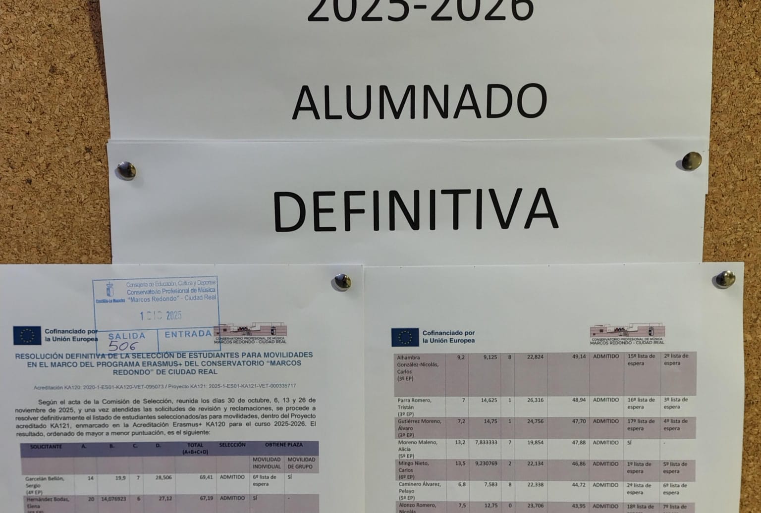 Ya está disponible el orden de actuación de la prueba instrumental Erasmus+ que tendrá lugar este jueves, 30 de octubre de 2025, en el Auditorio “Manuel de Falla” del conservatorio:…
